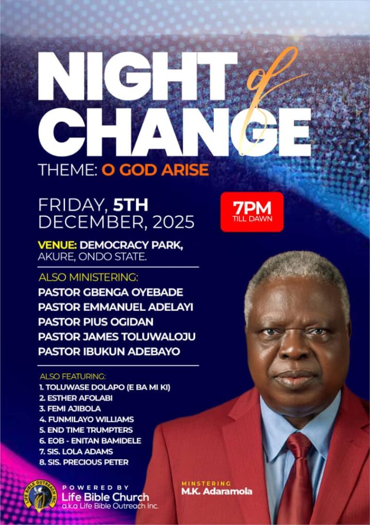 Once a year, under the celestial canvas of the night sky, thousands gather in Akure for an unforgettable experience – Night of Change. This annual program, scheduled from night till dawn, transcends denominational boundaries, uniting believers and seekers alike in a shared quest for spiritual rejuvenation.
